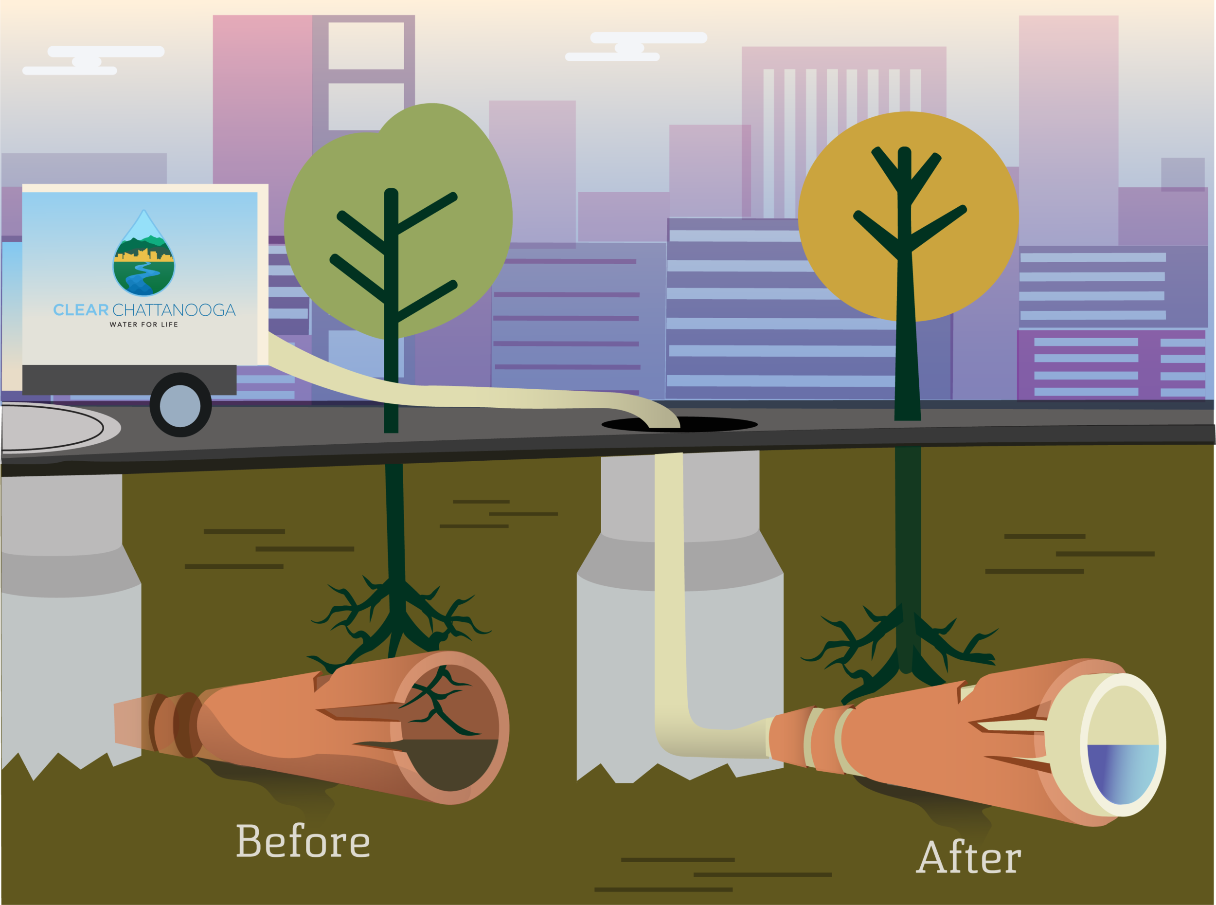 Visual design, public information, and crisis communications for city departments and state agencies. Work includes infographics, emergency alerts, social media campaigns, photography, and public education materials that drove 60.2% social media impression growth for the City of Chattanooga Department of Public Works.